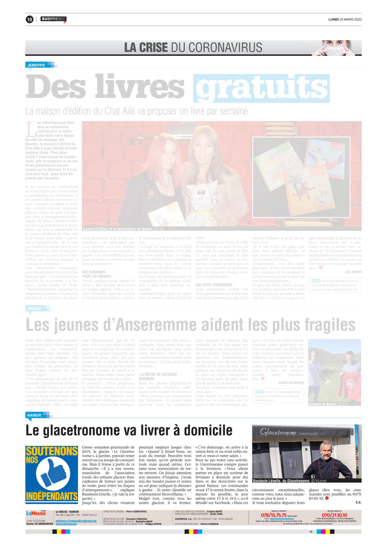 LE GLACETRONOME dans les médias Les petits secrets du glacier de Jambes en articles et en vidéos « L’ÉCHO » RACONTE LA RECONVERSION DU JOURNALISTE EN GLACIER GASTRONOMIQUE Lire l'article LE JOURNAL « LA MEUSE » S’INTÉRESSE AUX LIVRAISONS À DOMICILE DU GLACETRONOME Lire l'article L’UN DES PREMIERS ARTICLES CONSACRÉS AU NOUVEAU GLACIER, paru DANS « LA MEUSE » Lire l'article COUP D’OEIL SUR LA FRESQUE INSTALLÉE PRÈS DU GLACETRONOME, DANS « LA MEUSE » Lire l'article LA BIÈRE ET LA GLACE SE MARIENT TRÈS BIEN. « L’AVENIR » Y CONSACRE TOUT UN REPORTAGE DANS LE JOURNAL. Lire l'article DANS SON ÉMISSION ESTIVALE « ICI & PAS AILLEURS », LN24 FAIT LE DÉTOUR PAR LE GLACETRONOME. WALDORADO ET SNARK PRODUCTIONS VEULENT SAVOIR COMMENT « CHANGER DE CARRIÈRE« . EXEMPLE TOUT TROUVÉ AVEC BAUDOUIN AU GLACETRONOME. POUR « TOUT L’BAZAR », SUR LA RTBF, BENOÎT MARIAGE EMMÈNE JOËLLE SCORIELS AU GLACETRONOME. « C’EST DU BELGE », QUI MET LE « MADE IN BELGIUM » À L’HONNEUR sur la rtbf, VISITE LE LABORATOIRE DU GLACETRONOME. « QUEL TEMPS! » ET MARIE-PIERRE MOULIGNEAU, POUR LA RTBF, VIENNENT PRENDRE LA TEMPÉRATURE AU GLACETRONOME.